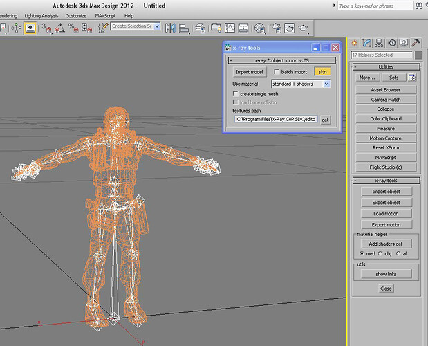 - Otwieramy skrypt Import Object, włączamy tryb Skin, wczytujemy model: