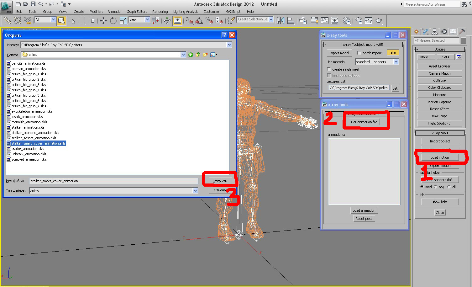 - Włączamy skrypt Load Motion, naciskamy przycisk wyboru pliku animacji i wybieramy ten, który jest potrzebny: