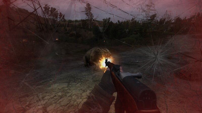 - Wyciszone odgłosy strzałów i wybuchów w oddali