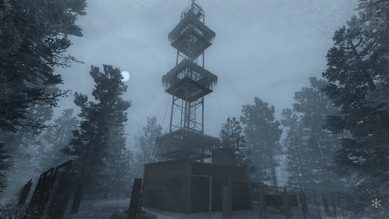 Wieża jest zaznaczona na mapie, trzeba iść na południowy wschód, niemal do samego “rogu”. Pomijając pomoc kompasu, można zauważyć 2 elementy nawigacyjne. Wychodząc ze stacji meteorologicznej (na mapie oznaczona jako Dom), trzeba iść prosto (czyli na południe), aż dotrzemy do ambony myśliwskiej, w tym miejscu skręcamy w lewo (czyli na wschód wg mapy) i po drodze powinno pojawić się złamane drzewo, niedaleko za nim jest wieża. Po znalezieniu ciała współpracownika trzeba zrestartować wieżę, przełącznik jest w tym samym pomieszczeniu, co ciało.