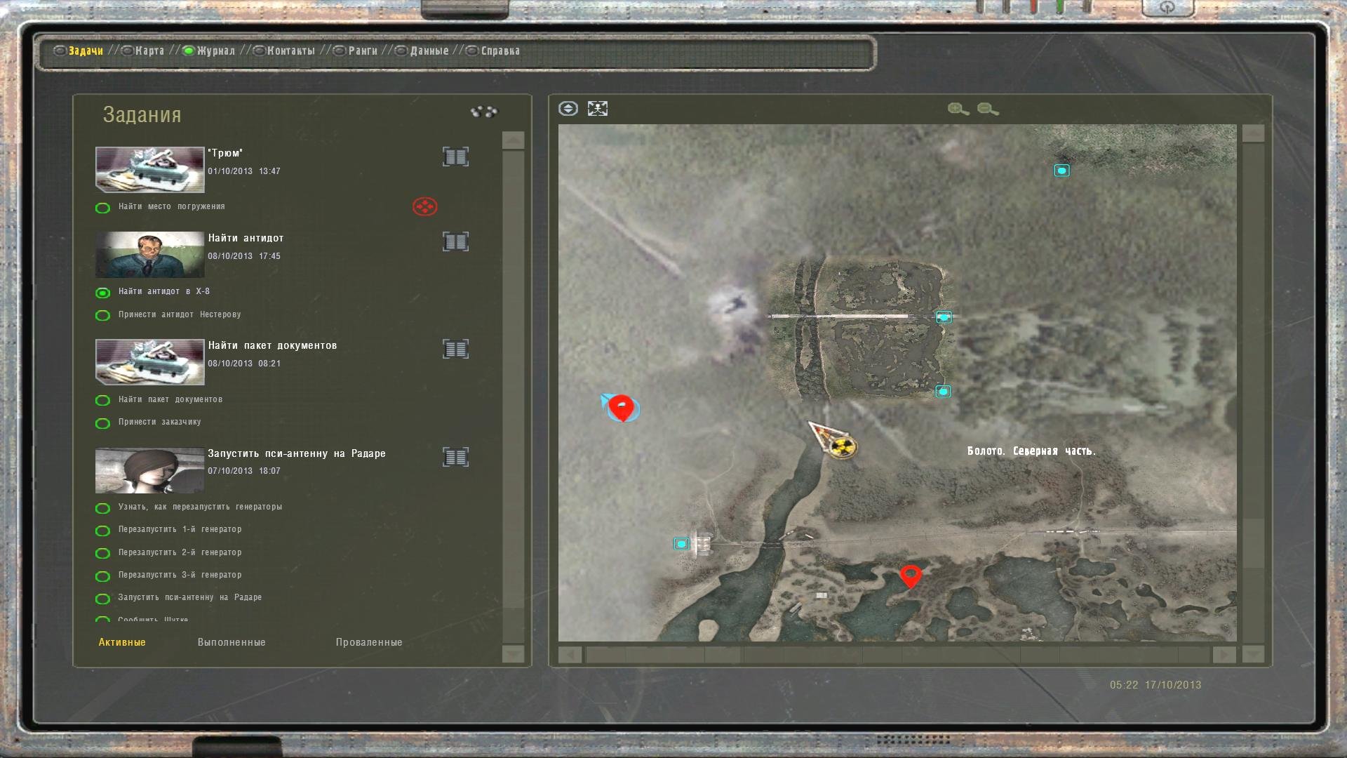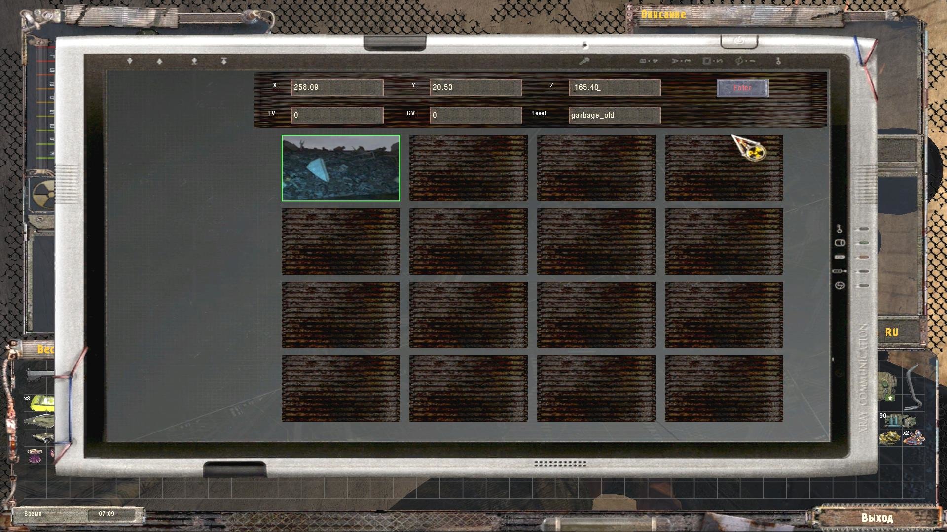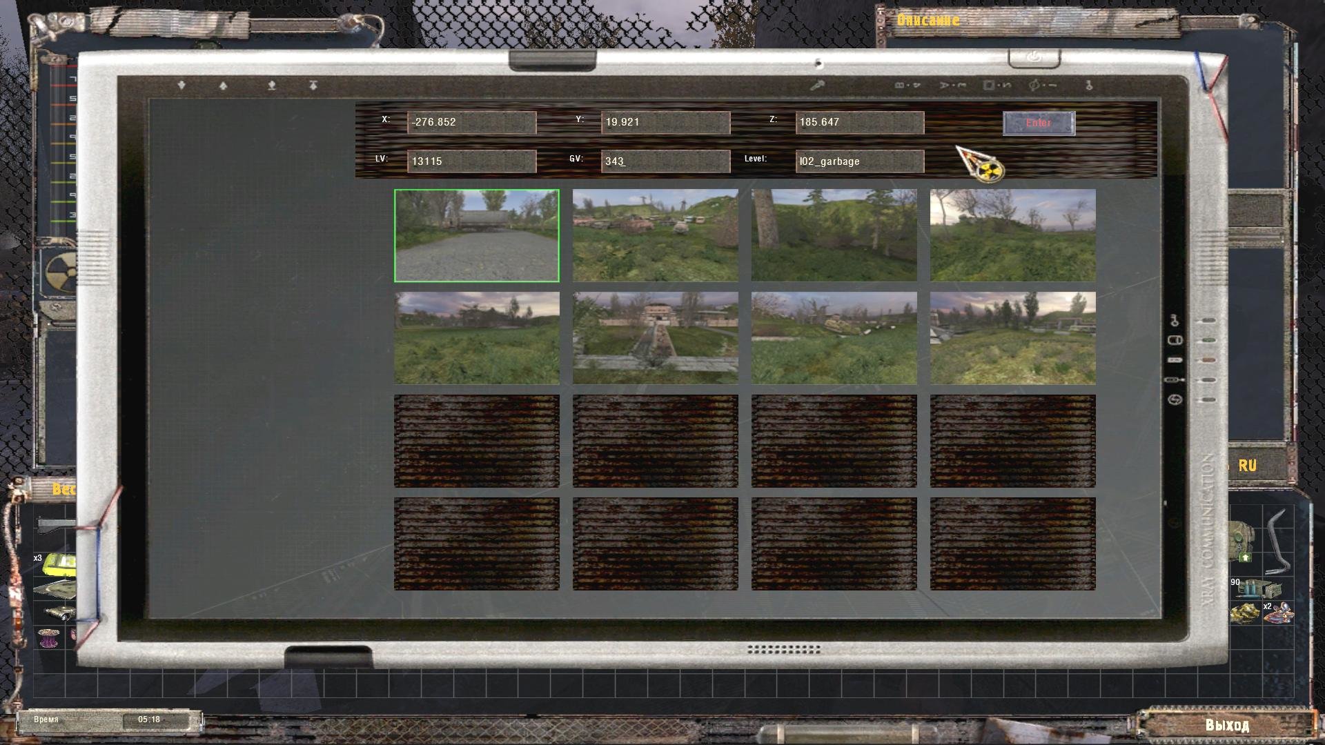 Okazuje się, że owe przedmioty to nie artefakty, a teleporty na lokację “Трюм” (słowo to ma kilka znaczeń - mi najbardziej pasuje pomieszczenie pod sceną w teatrze jako aluzja do podświadomości). Warto stawiać przy nich znaczniki GPS - przydadzą się w przyszłości. Przejścia z Трюм-u na inne lokacje wyglądają tak:
