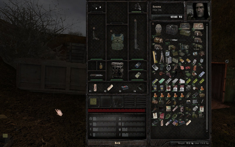 Co do rozbierania sprzętu na części - lekkim niedopatrzeniem chyba jest to że pistolety mają części zawsze w idealnej kondycji, nawet zardzewiały Makarov po wieloletnim opalaniu się w kałuży na Wielkich Bagnach ma się dobrze po rozebraniu. Pancerze po rozłożeniu dają nam szmatki a także akcesoria, elementy czy przyrządy, które musimy mieć jeśli chcemy ulepszyć nasz kombinezon.