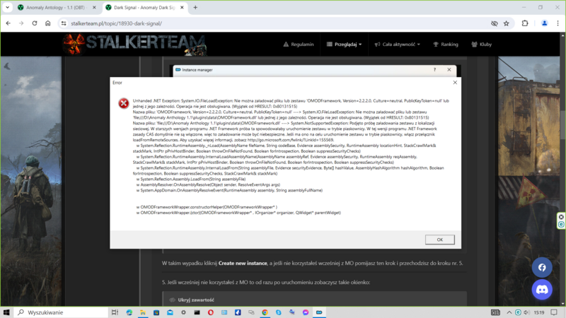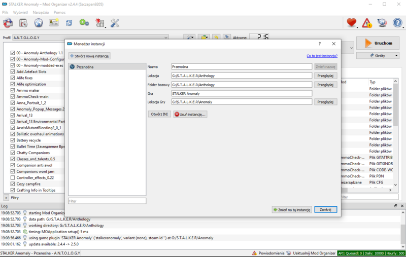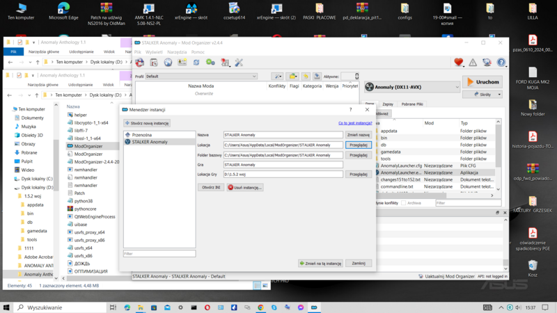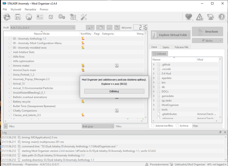 Witam i przepraszam z góry za “upierdliwość”. Pobrałem moda z torrentu - bardzo dziękuje za link, ma dwa foldery Anomaly 1.5.2 i Anthology 1.1. Zainstalowałem Anomaly i uruchomiłem Mod organizera. Dawno temu instalowałem gry z wykorzystaniem Mod organizera i już nic nie pamiętam. Poklikałem coś w ciemno i za 3 razem udało mi się odpalić grę po polsku. W Mod organizerze Laucher był z Anomaly a po lewej stronie pliki z Anthology. Niestety zmieniłem coś w opcjach gry (a także język z angielskiego na rosyjski -sądziłem, że to język dialogów) i posypało się. Po ponownym uruchomieniu w Mod Organizerze mam pustą lewą stronę i odpala mi się tylko Anomaly. Pobrałem nawet wyższą wersję Mod Organizera ale nie wiem jak pobrać pliki po lewej stronie z Antology. Może mi ktoś łopatologicznie krok po kroku wyjaśni co mam zrobić. Chciałbym uniknąć ponownej instalacji ( a jeżeli jednak będę musiał to także krok po kroku jak “zainstalować” Mod Organizera z modem).