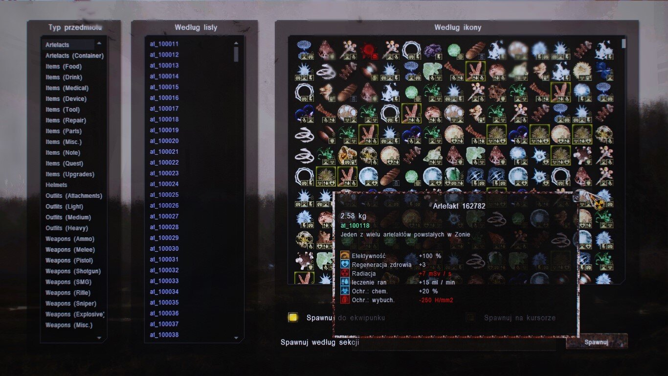 Mod generuje 4500 losowych artefaktów, z losowymi statystykami, które pojawią się w grze i będą do znalezienia w anomaliach.