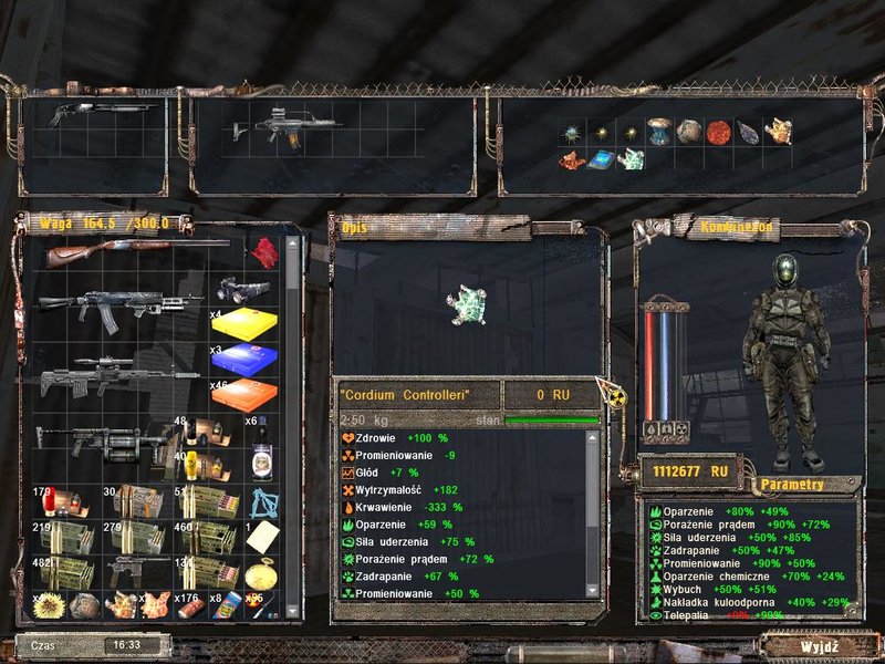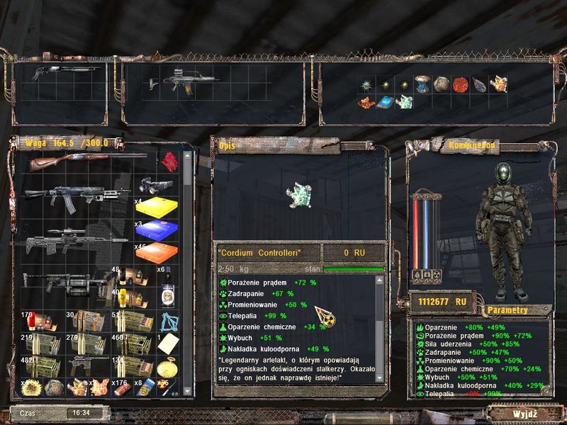 Zauważyłem na screenie wyżej, że wgrałeś dodatek i jak rozumiem, chcesz przywrócić wygląd otoczenia do pierwotnego stanu. Jeśli tak, to wystarczy usunąć lub zmienić nazwę katalogu levels, analogicznie postąpić z katalogiem textures*tress* i Zona znowu będzie wyglądała, jak wcześniej.A ja zaczynam się wkręcać, Jestem na Jantarze i dopiero teraz zaczynam przypominać sobie moda. Ne zauważyłem, żeby artefakty w plecaku karmiły radiacją naszego GG.