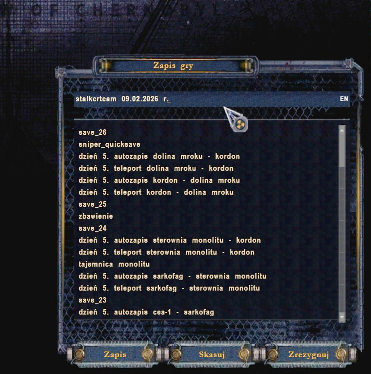 Witam, albo dopisz klawisz (jest puste pole) w opcjach sterowania(naprzód, w tył itp.): zapis na lokacji - ja zrobiłem sobie f11. Wtedy masz dodatkową opcję zapisu na lokacji (będzie z automatu lokacja np Kordon i data godzina)