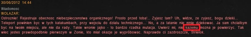 Dziękuję, wszystko poprawione. Błędów w tych składanych smsach nie da się poprawić. Inna gramatyka. Teksty na teksturach, czyli w tym wypadku “notes Pawlika” na razie nie będą przetłumaczone. Po prostu z powodu wielu opcji językowych, jeszcze nie wymyślono co zrobić w tym wypadku z teksturami. W sumie, to byli zdziwieni, jak im je podesłałem, bo nikomu innemu nie przyszło to do głowy.