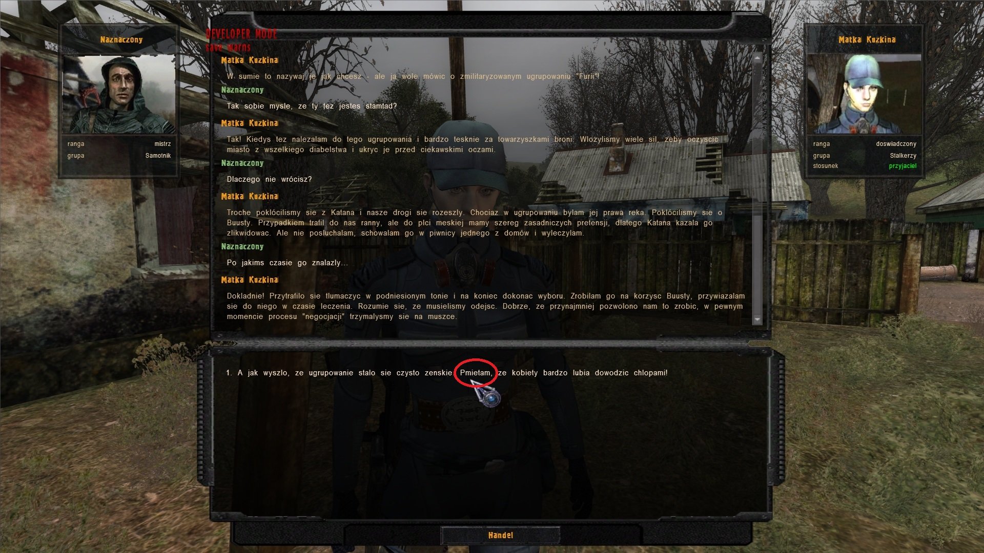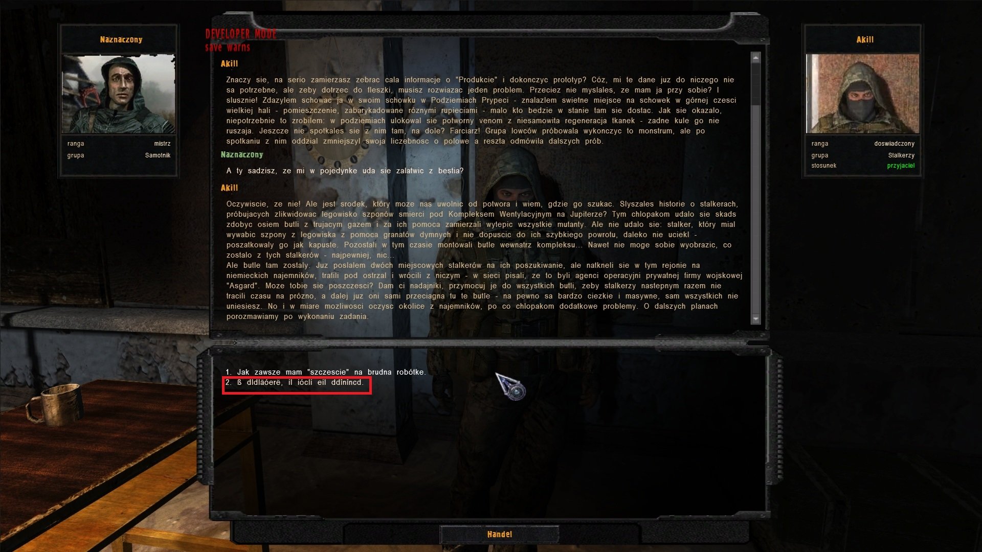 Raczej nie zrozumiałeś. Te tekstury są już zrobione po polsku, i to od czasu Solianki. Ale nie da się ich wrzucić do tego moda, a przynajmniej nie oficjalnie, a tylko jako jedną z ułatwiających życie “poprawek”, co z kolei wymaga czita na silnik, i takie tam… OP-2.1 jest w tej chwili w pięciu wersjach językowych. Tu nie ma żadnej gamedaty ze spolszczeniem. Cała lokalizacja jest skupiona w katalogu text. I tam są odpowiednio skonstruowane pliki tekstowe, zawierające wszystkie wersje językowe. Nie ma, jak to kiedyś bywało, katalogów “rus”, “pol”, “eng”… a jest jeden katalog text, w nim plik, dajmy na to, amk.xml, a tym pliku, po kolei, każde zdanie w pięciu językach. Ale nie da się tak zrobić z teksturami dla każdego języka. A przynajmniej na razie się nie da. W sumie, strata niewielka. Obiecano, że się temu przyjrzą, ale na razie sa ważniejsze sprawy. A jeśli sie nie przyjrzą, to w końcu wyjdzie jakaś wersja finalna, do której się zrobi “poprawkę” z naszymi, przetłumaczonymi teksturami i kilkoma innymi drobiazgami, które też nie są ujęte w lokalizacji, i tyle.