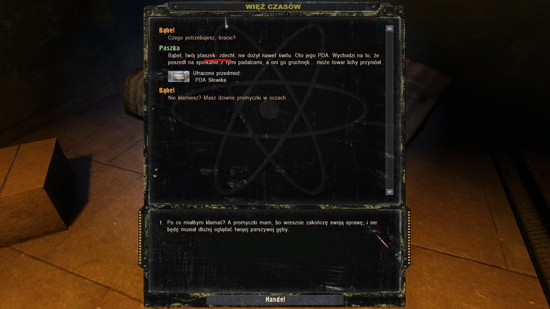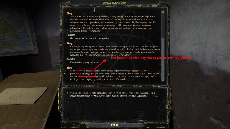 To ja coś od siebie. Gdy spotykamy się z Leną w kanionie by załatwić oddział świadomości, dialogi są pozamieniane, Paszka ma jej, a ona nasze (niestety nie mam screenów)