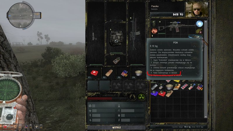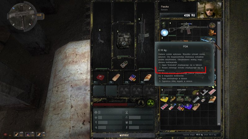 Krótkie naświetlenie sprawy. W modzie jest kilka sytuacji, gdzie musimy odszukać schowki, bądź przedmioty na podstawie zakodowanych podpowiedzi. Podpowiedzi są różne, jedne łatwe do “rozgryzienia”, drugie bardziej skomplikowane. @tom3kb wstawił jako coś, co warto poprawić podpowiedź - Ręka wielorękiego w dziurze - mnie się wydaje, że podpowiedź jest ok. Wszystko zależy jak się spojrzy na na tę “koparę”. Mnie od razu skojarzyło się to “wielorękiego” z tymi czerpakami na obwodzie koła. Chociaż - wielkorękiego też pasuje.