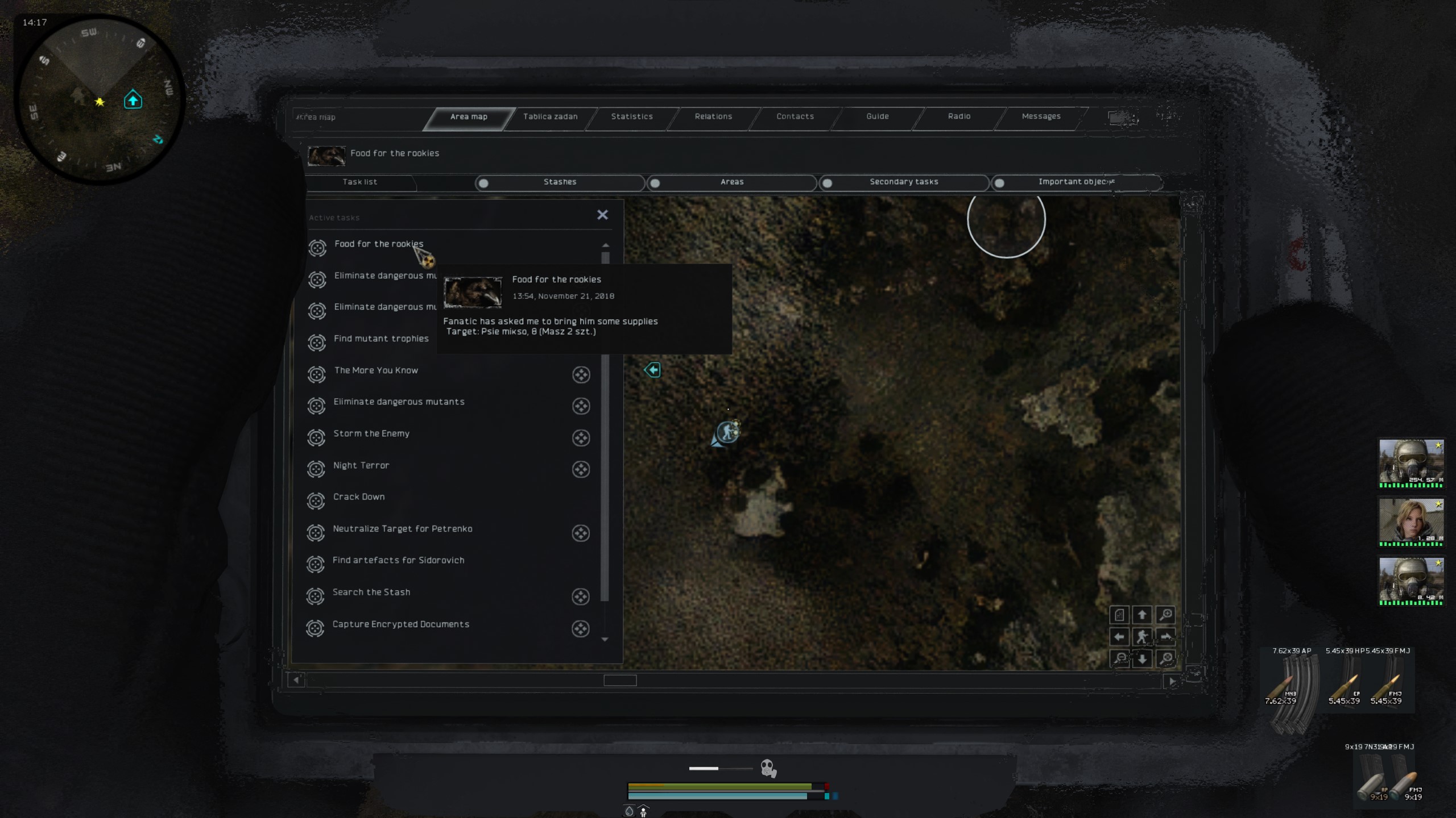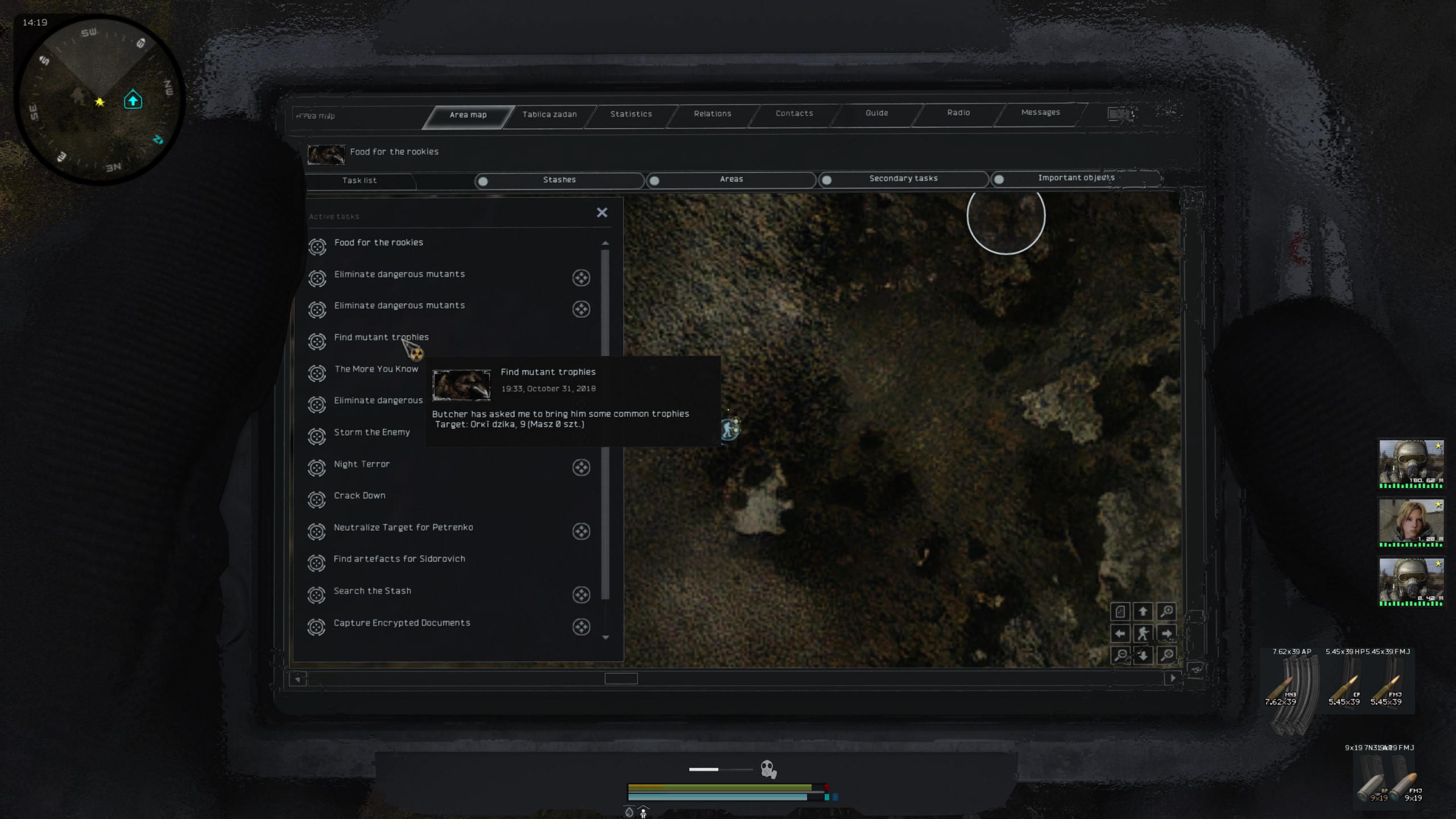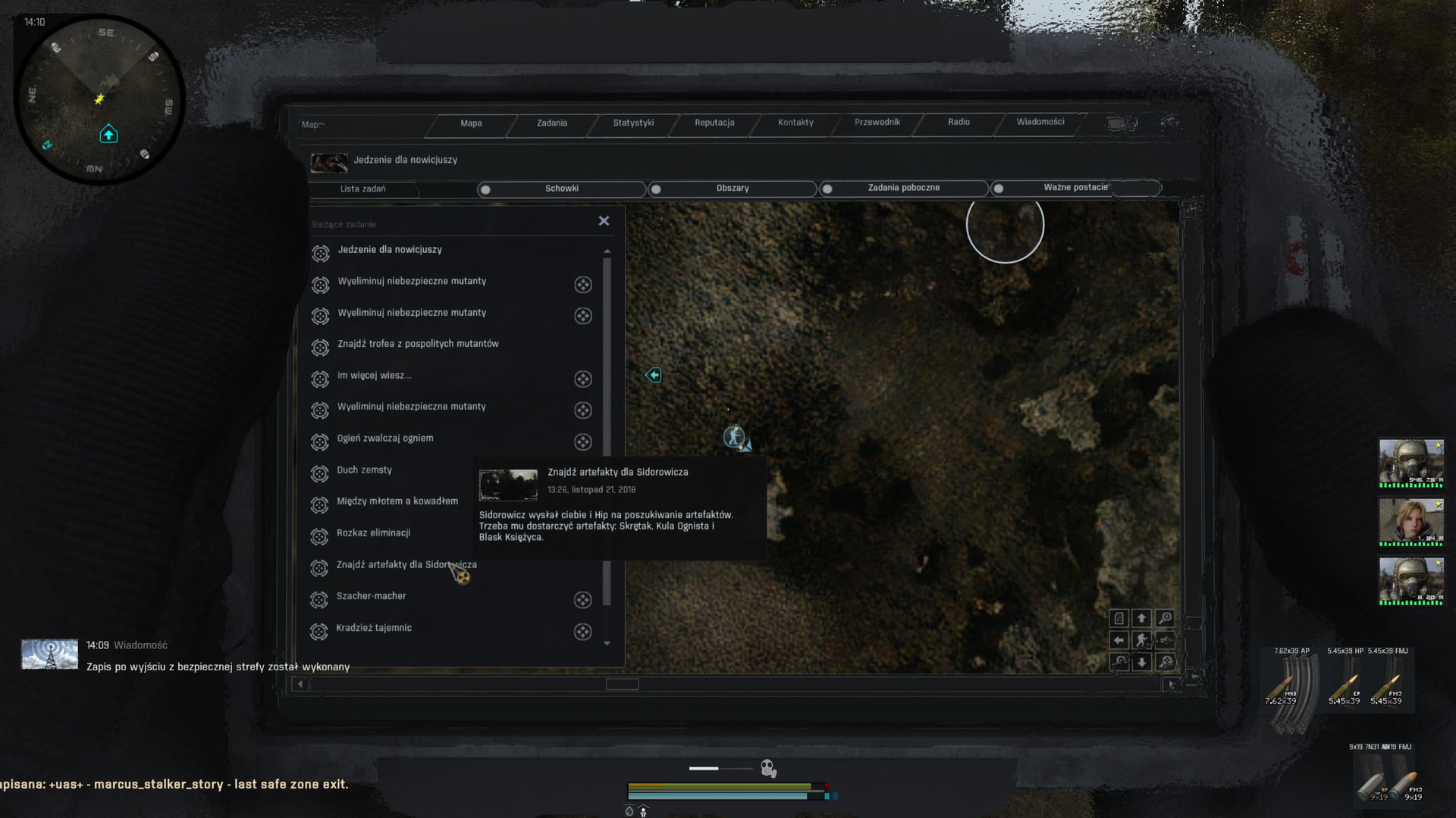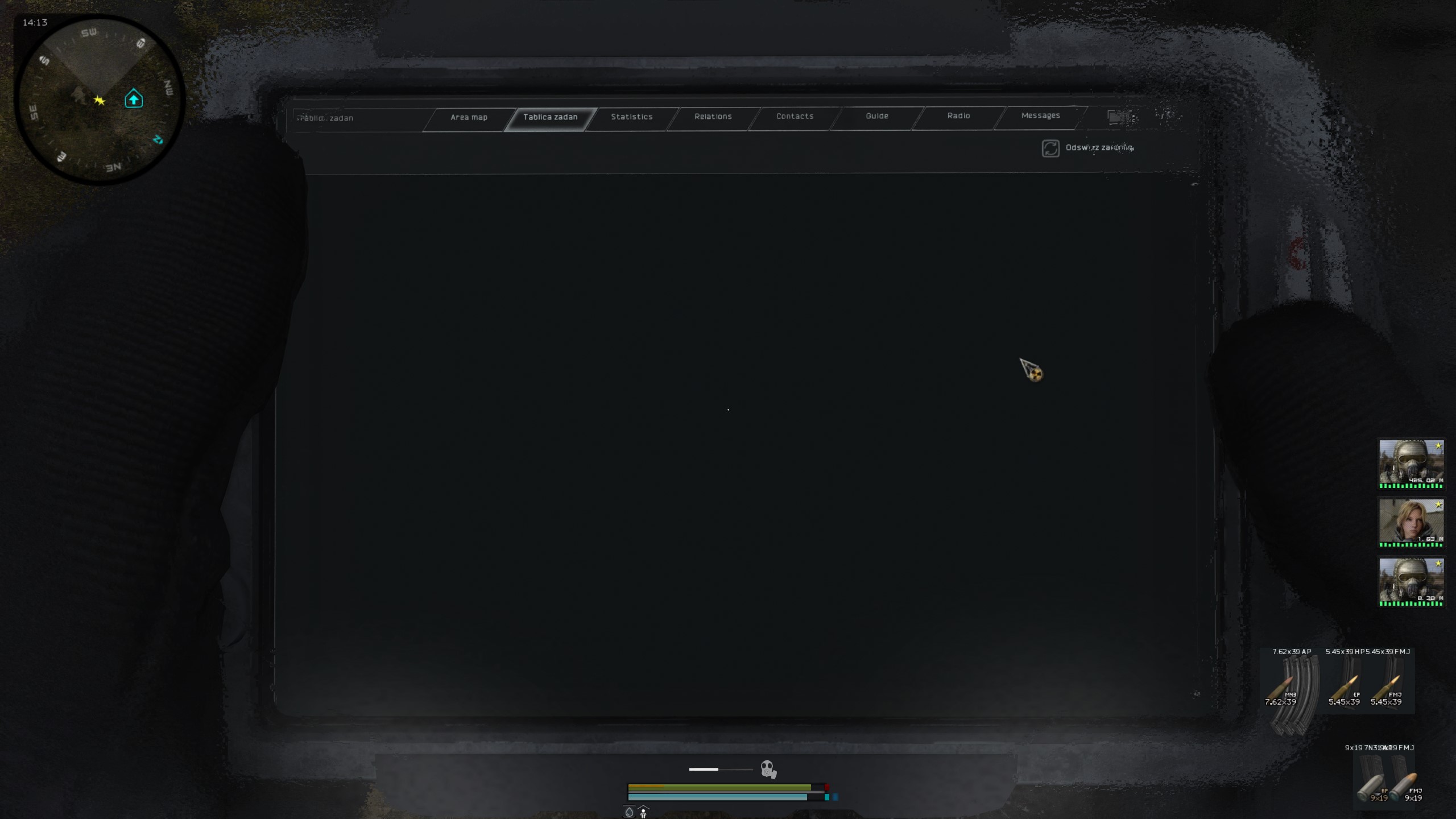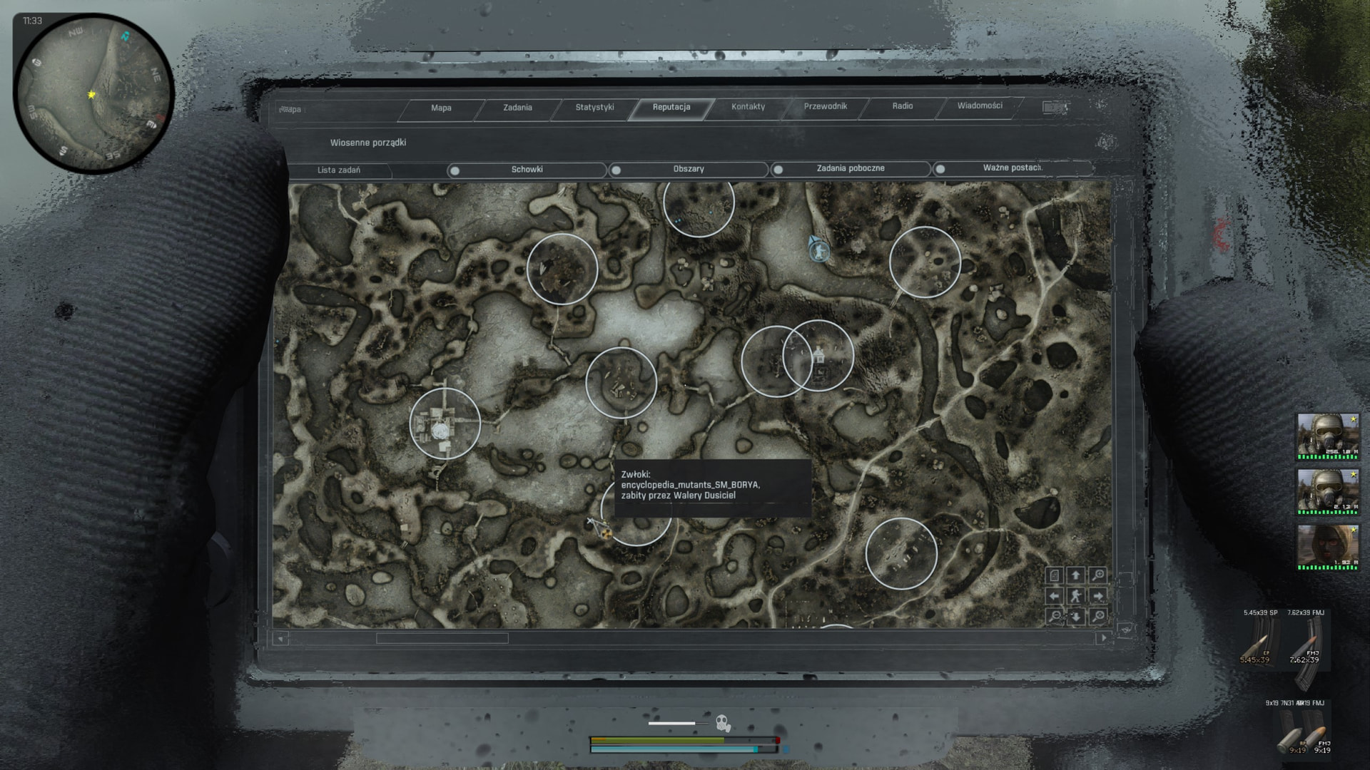 No więc tak: jeżeli chodzi o te napisy No Data przy przeszukiwaniu mutantów to to jest tekstura, nie da się tego przetłumaczyć - trzeba by obrobić teksturę w Photoshopie, żeby wstawić tam napis “Brak danych”, albo pogrzebać w plikach ui, żeby dodać tam grafikę mutanta o ile miniaturki lurkera czy karlika są w teksturach (teoretycznie zawsze można je zapożyczyć z Gammy, ale nie wiem czy jest sens tak grzebać). Do tego encyclopedia_mutants_SM_Borya nie ma tekstu w plikach, więc trzeba by coś po prostu wymyślić, ale cholera wie do jakiego pliku w ogóle wrzucić tekst. Co do zadania dla Sidora z Hip - fakt, tu akurat jest moje niedopatrzenie bo o ile nazwy artów w eng i polskim opisie questa widzę, że się zgadzają to w dialogu są wypisane artefakty, które trzeba było zebrać z Hip dla Sidora w vanillowym Anomaly - poprawić to to jest chwila moment, tak samo jak z TOZem bo wystarczy tylko zmienić nazwę. Co do tych info o pogodzie - też nie ma tekstu do tego nigdzie, tak samo jak tych questów od Rzeźnika i Fanatyka (sprawdziłem przed chwilą otwierając wszystkie pliki .ltx i .script, które składają się na tego modpacka - łącznie koło 7k plików).