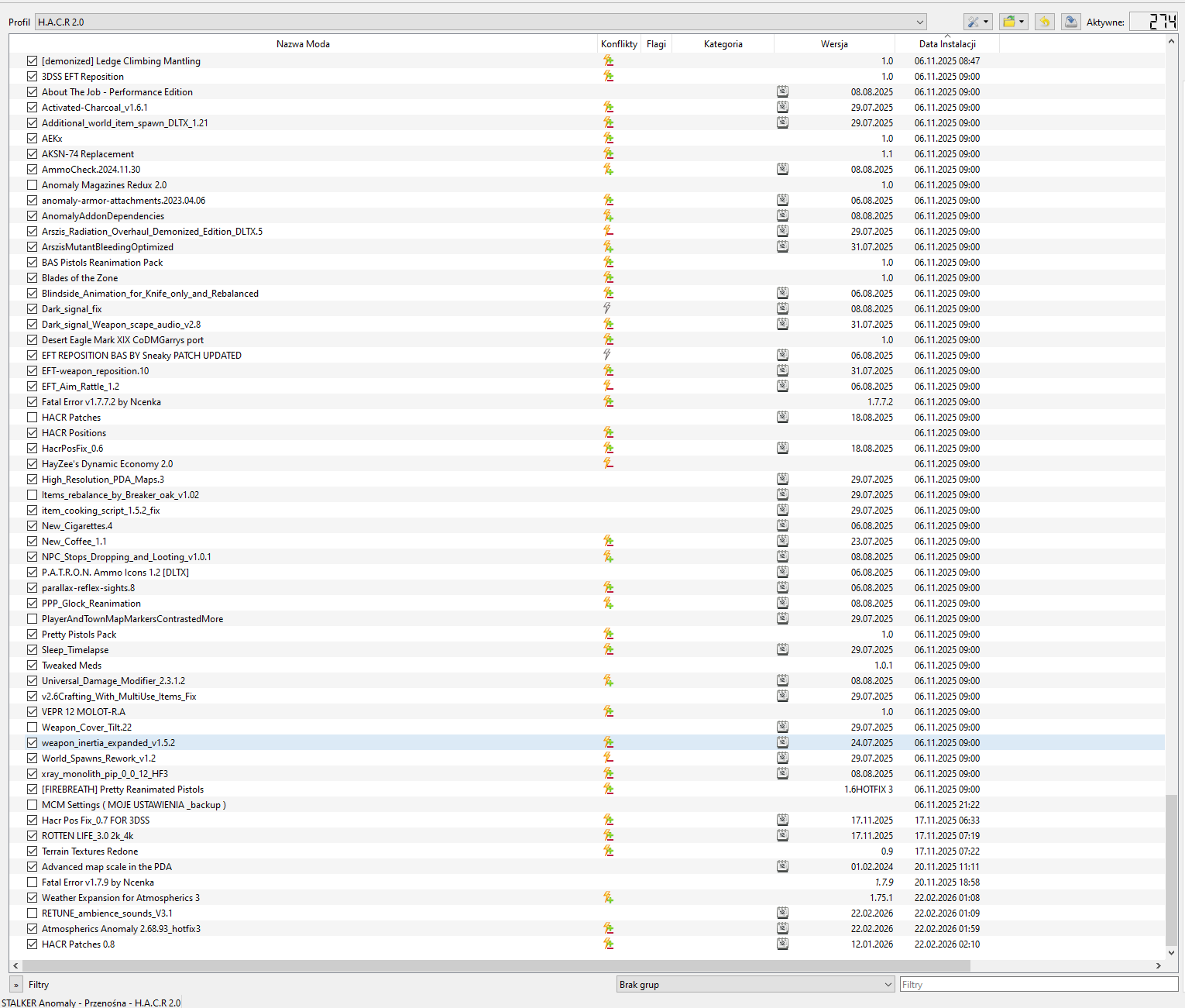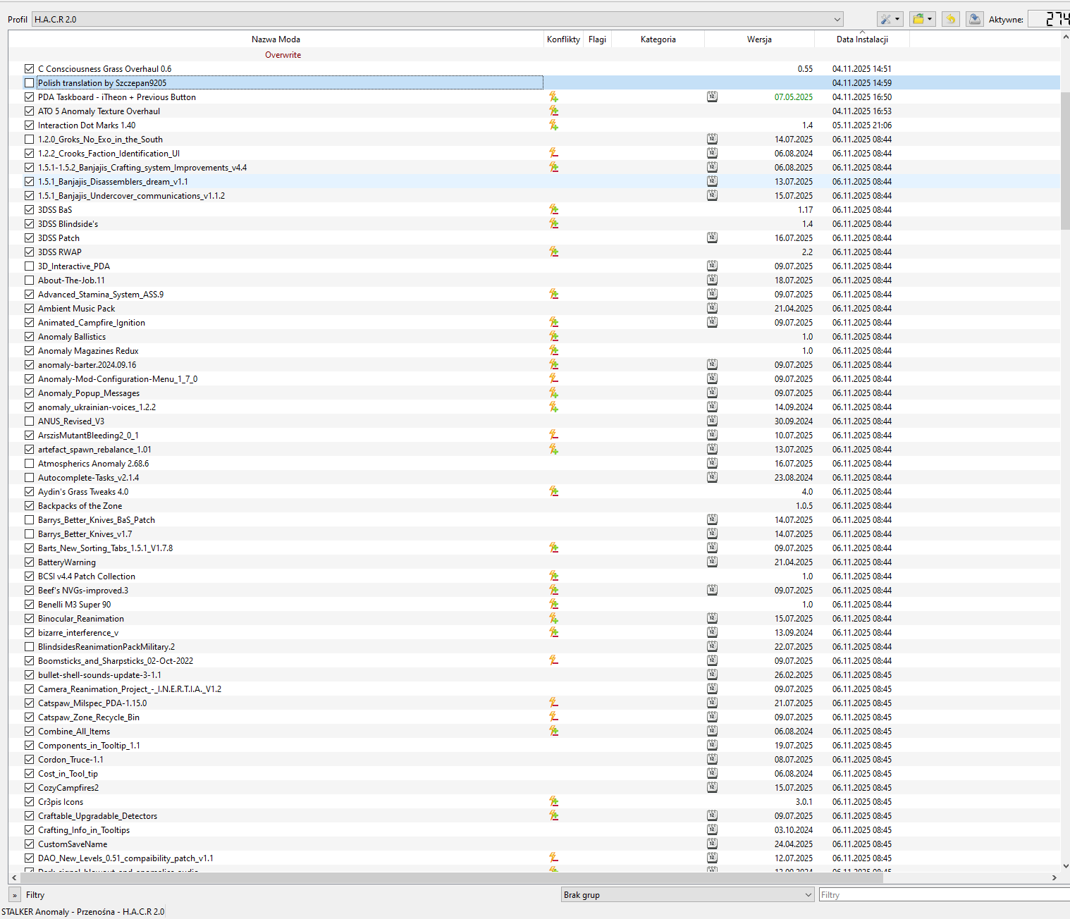 na początek lista modów, daty aktualizacji