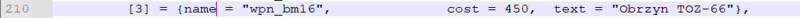 Heh no bo prawdziwa nazwa BM-16 to TOZ-66 tylko muszę jeszcze się upewnić czy wpn_bm16 to TOZ-66 zwykły czy Obrzyn bo jak poprawiałem nazwy broni to natknąłem się na wpn_bm16 i wpn_bm16_full. Możliwe, że tu chodzi o zwykłego TOZa-66, a nie o Obrzyna.