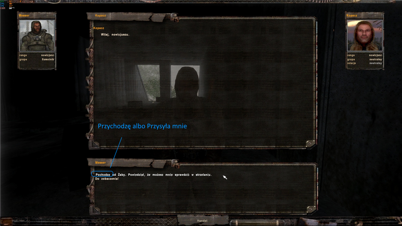 W Wiosce Kotów w chatce z Kopaczem siedzi stalker o ksywie “nieznany nowicjusz” (w zasadzie jest ich tam takich dwóch), z jednym można pogadać i dostać zadanie. Próba rozmowy z drugim wywala grę z takim logiem.