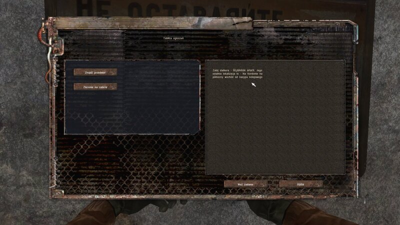 Treść zadania wyświetlała się, jak trzeba, tylko to, kogo ono dotyczy, było w krzakach. W moim przypadku chodziło o Nieznanego bandytę. Działo się tak, ponieważ grałem na OLR 3.0 -przepakowane spolszczenie, w którym nie ma pliku olr_newnpc_eqp.script. Cóż, padłem ofiarą przypadkowego chaosu, ale nic to, jeszcze raz zacząłem nową grę i wszystko jest w porządku.