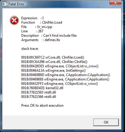 Na początku fsgame.ltx (choć plik jest w głównym folderze) , potem kiedy wrzuciłem fsgame.ltx do bin to potem wyskoczył error że brakuje bin/gamedata/configs/system.ltx , znowu uzupełniłem ten plik , po czym odpalam i wyskakuje już totalny error(sreen w załączniku).Jednym słowem proszę o pomoc. ![]()