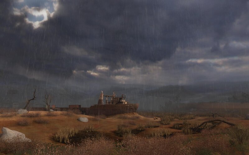 90% grafiki pochodzi z AtmosFear-a i Absolute Texture Packów. Pavel dodał co prawda od siebie pogodę z inych Completów (na Zatonie) ale sky-boxy są porozciągane i balans bieli jest skopany. No i poza tym Zona wygląda jakby była w górach a okolice Czarnobyla to raczej równina.