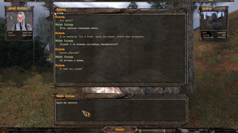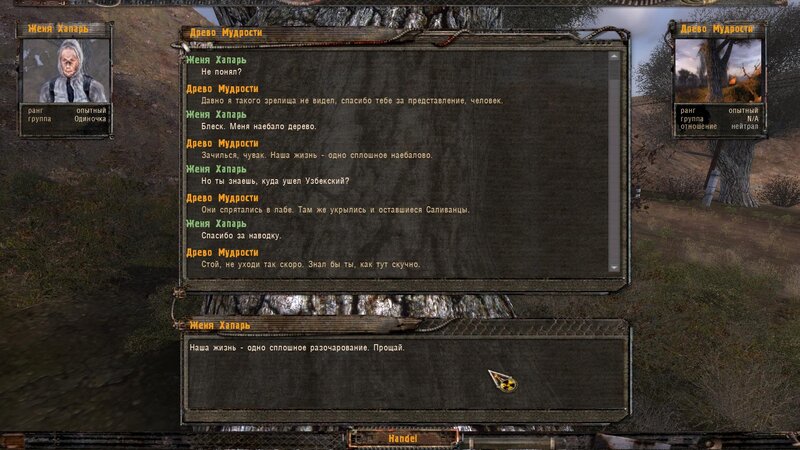 Wcale nie jest taki głupi ten mod, jest raczej zrobiony na luzie i z dowcipem. Graficznie to czysty CCz. Na uwagę zasługują ludzkie dialogi napisane z humorem. Ciekawe są też opisy broni, np. AK-74: Legenda nie wymaga reklamy, Pm: Bóg z nami. I pamiętaj, ani słowa po rosyjsku, czy Chaser 13: Postaraj się nie zasnąć, gdy zdecydujesz się go przeładować. Nie wiem, czy autor świadomie przegiął z parametrami niektórych pukawek, ale sześciostrzałowy BM-16, czy TOZ-34 pięcionabojowy to lekka przesada, składam to na karb zjawiskowości Zony. Jak dla mnie zbyt duża jest też obfitość wszelkiego dobra przy trupach, ale parametry broni poprawiłem, a z trupów biorę tylko to, co mi potrzeba (na przykład tarcze). Jak na razie, zero problemów technicznych. Załatwiłem sprawy na Kordonie i fabuła kieruje mnie na Wysypisko. Cóż, zobaczymy, co będzie dalej.