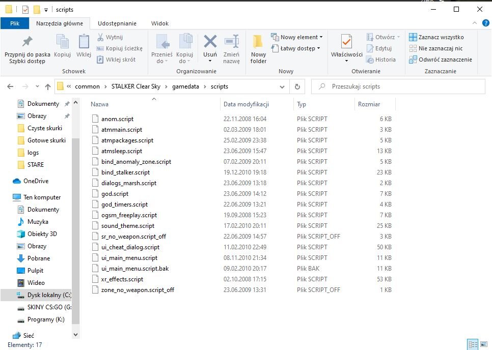 wszedłem tak jak kolega powyżej gadał C:\Program Files (x86)\Steam\steamapps\common\STALKER Clear Sky\gamedata\scripts i nie ma :(