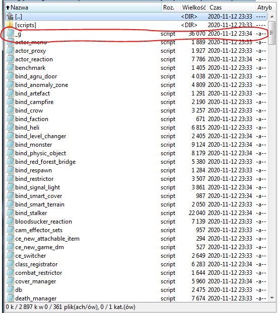 w tym moim linku jest to w dalszym poście opisane, wyglada na to, ze ten plik _g.script jest w gamedata ale z gry, a nie w gamedsta moda i najpierw trzeba by plik gry rozpakować unpackerem i w nim to zrobić.