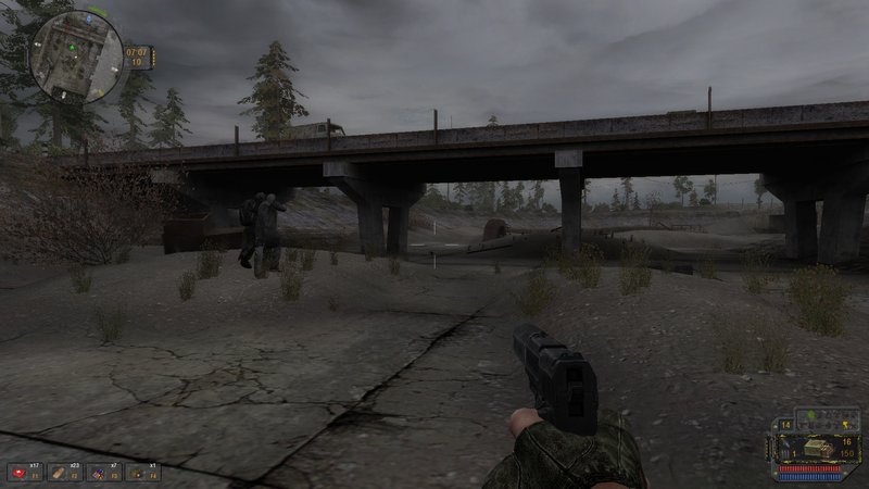 Z innej beczki. To zadanie na haracz dla Świadomości, można chyba wykonać na dwa sposoby. Za pierwszym razem, tuż przed wzięciem zaliczki u Bąbla, dostałem informację, że haracz oprócz przypadającej na mnie części został wpłacony i w PDA brak aktywnych zadań. No to poszedłem do bazy już nie atakowanej, handel, naprawa i spanie. Rano gdy wyruszyłem do Janowa, kolejna informacja od Świadomości, że naruszyłem warunki umowy, baza znów obstawiona i zadanie gadać z Bąblem. Pogadałem i dostałem zadanie spotkać się z Szierhanem. Tu przerwałem, wczytałem zapis i poszedłem z kasą. Oczywiście Siedoj wziął całe 100000, zamiast 6000. Na razie gram tę opcję. Mam już PDA handlarza z Kopaczi.