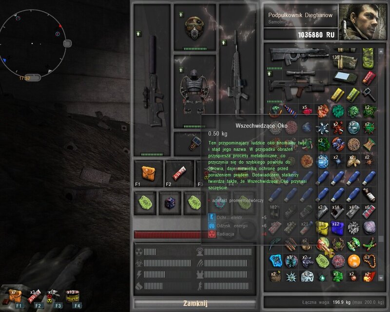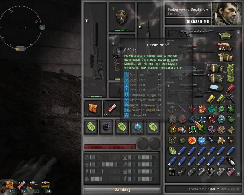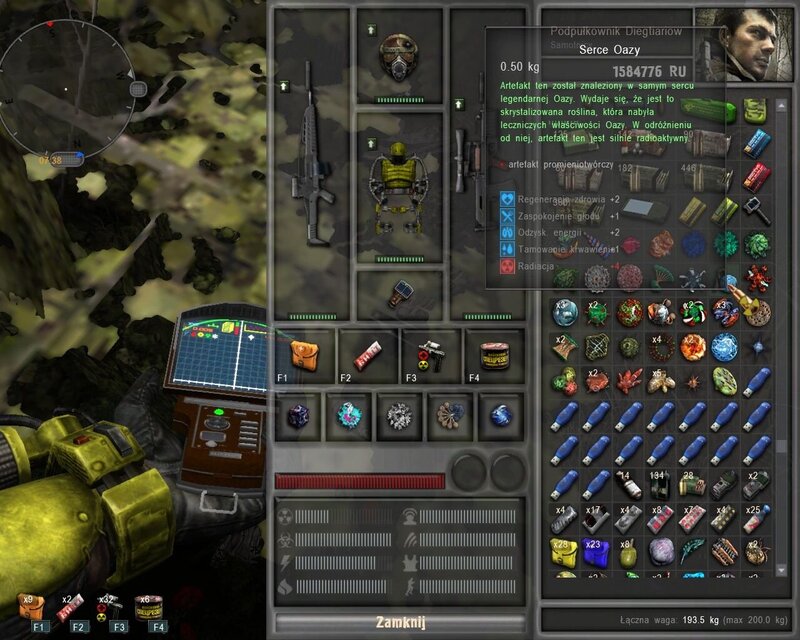 ). Sporym atutem moda jest też ogromny przekrój dostępnych artefaktów, ograniczeniem przy ich zdobywaniu są posiadane detektory, te zdobywamy w trakcie postępów w rozgrywce, najlepszym jest Elita +. Dzięki temu detektorowi odnalazłem artefakt sześcian na latającej wyspie w Remizie, a poszukiwany naukowiec leży niedaleko martwy w obozie. Jest bardzo dużo naprawdę przydatnych artefaktów ułatwiających rozgrywkę, te najlepsze chronią przed promieniowaniem, podnoszą udżwig, zwiększają znacząco wytrzymałość, tamują krwawienie i przywracają zdrowie i bywa, że takie umiejętności są w pojedynczym artefakcie np. czyste niebo.