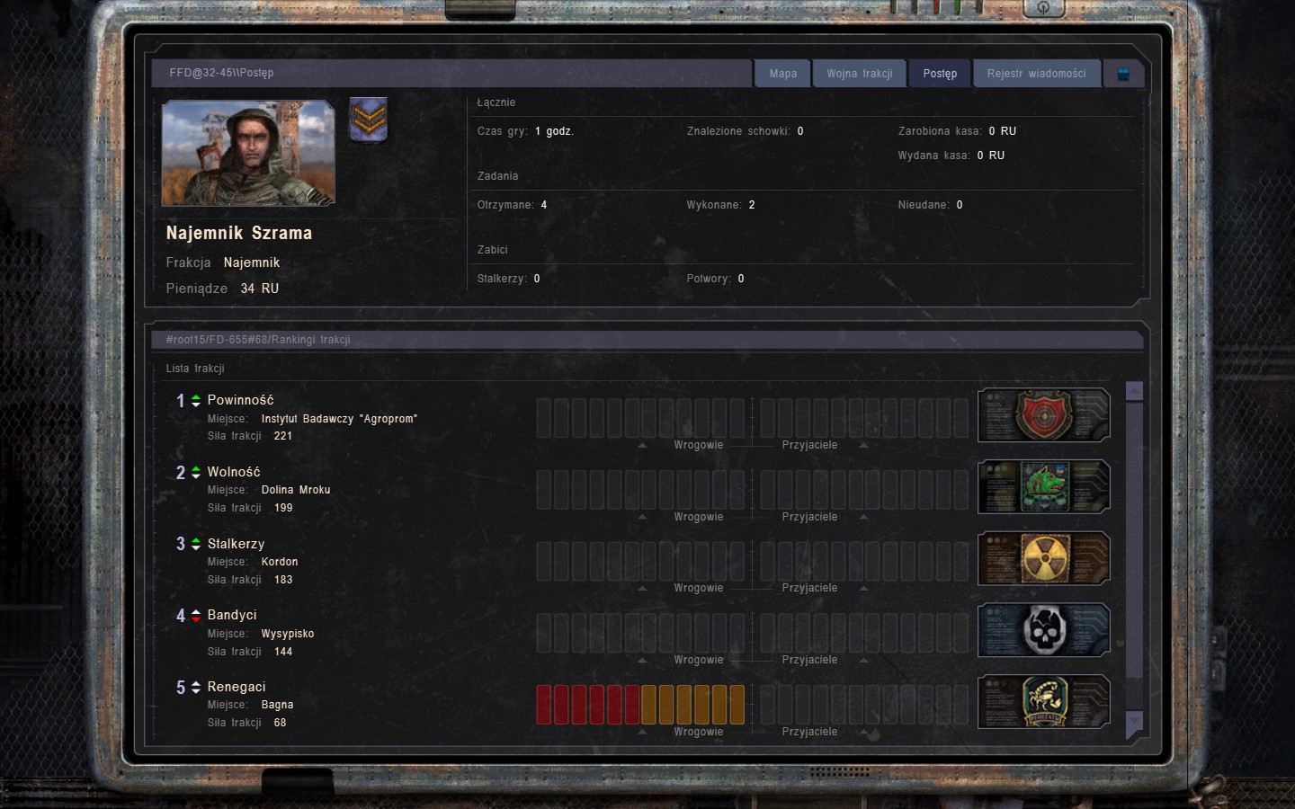 Dałby ktoś radę zrobić mod który przywraca widok postępu frakcji? (to co było w Czystym Niebie) Chodzi o to: