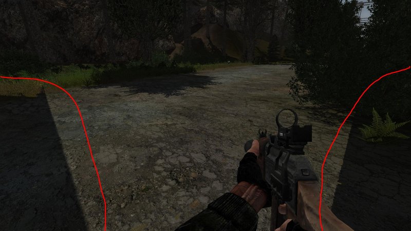 Przykład na screenie to już wersja ekstremalna, normalnie to podczas poruszania czasami wskakują trochę po bokach i na dole, zależy jak się obrócę itp. Czy to może wina oświetlenia na danej mapie? Wydaje mi się, że to może jakieś dziwnie wyświetlające się cienie drzew, niektórych ich modeli?