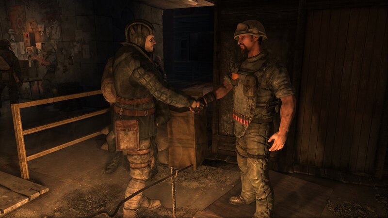 Mod posiada dubbing. I muszę przyznać, że bardzo dobrej jakości. Metro jak to Metro.. Bardzo liniowe. W modzie jest tak samo. Po krótkiej scence w barze idziemy kupić filtry i wyruszamy z przewodnikiem ( o ile dobrze zrozumiałem ) do kolejnej stacji. Po drodze mamy iść przez powierzchnię.