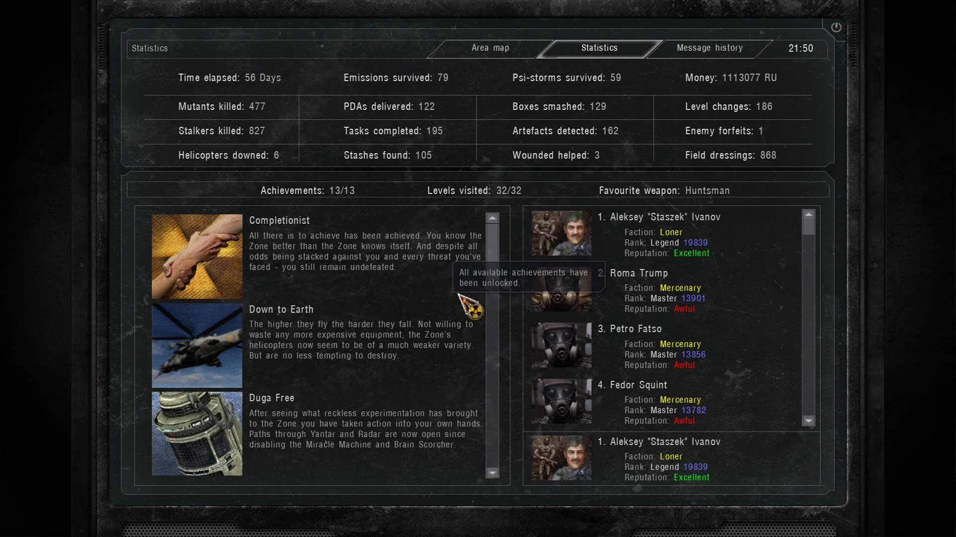 Ale jest na nie sposób. Wystarczy Abakan i kilkaset sztuk amunicji. Najlepiej strzelać ze znalezionej, jednak jeszcze strzelającej broni, bo po takiej akcji jest do wyrzucenia. Mam już trzy na koncie. Na dowód screeny z bagien.