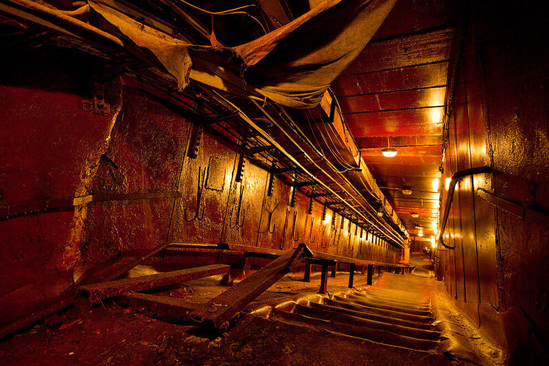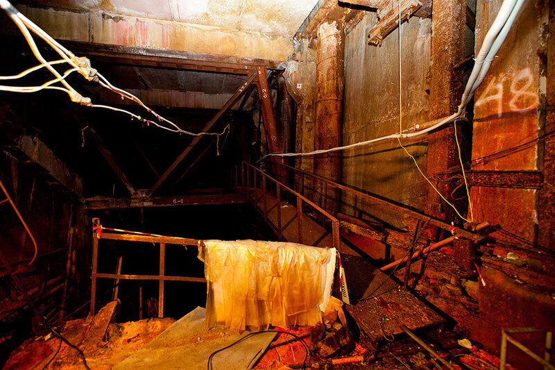 Wnętrze sarkofagu jest słabo oświetlone. Tunele prowadzą do ponurych pomieszczeń pełnych drutów, kawałków zmiętego metalu i innych gruzów. Rok 2011