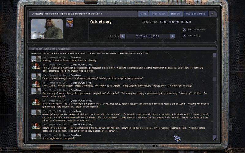 Jestem po akcji na CEA, wróciłem, w Limańsku przeprowadziłem Pilota, doprowadziłem Galeckiego do kopalni w Czerwonym Lesie, Anielę także. Mam od niej artefakt śmierci, pytanie co dalej? Ten naukowiec z Limańska nie chce mi dać zadania na Gaussa, a żadnego Gigi nie mogę znaleźć.
