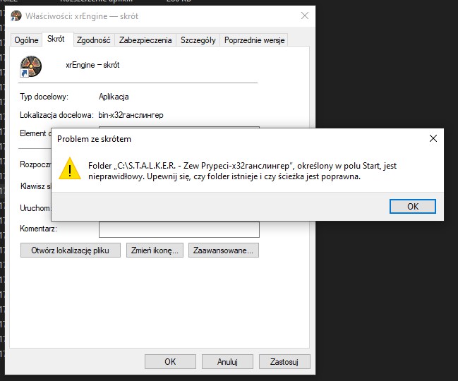 @FunkyKovalA spróbuj stworzyć skrót do xrEngine, wrzuć sobie go na pulpit, potem na niego PPM->Właściwości i skasuj końcówkę \bin w ścieżce Rozpocznij w i zobacz czy wtedy ruszy.