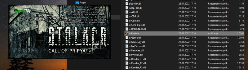 Tylko trzeba zdaje się utworzyć skrót do tego xrEngine, który jest w folderze bin z ruskim dopiskiem ганслингер bo ze zwykłego chyba się uruchomi czysty Zew Prypeci. Ja obie te rzeczy zrobiłem u siebie i wszystko śmigało jak należy i jak u Ciebie też zadziała to zaraz dopiszę to do instrukcji instalacji, a jak nie zadziała no to najwyżej wyrzucimy linki do wersji z Gunslingerem, jeżeli Tobie też nie pomoże to co napisałem.