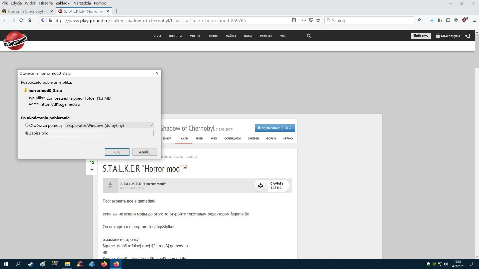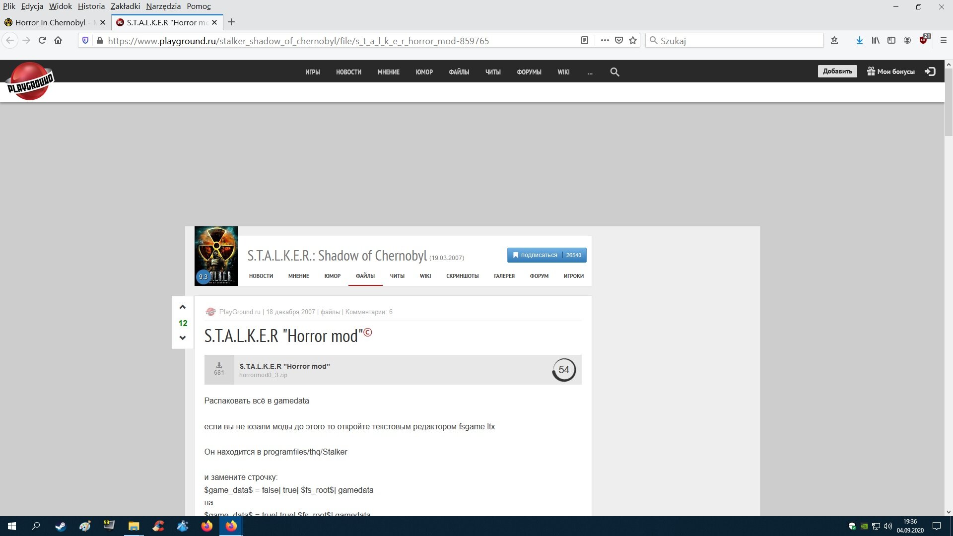 Faktycznie, nawet nazwa jest inna, “Horror Mod” . Jednak ze względu na datę jego pojawienia, warto by było go postawić. Pobiera się bez problemu. Ma sporo zmian.