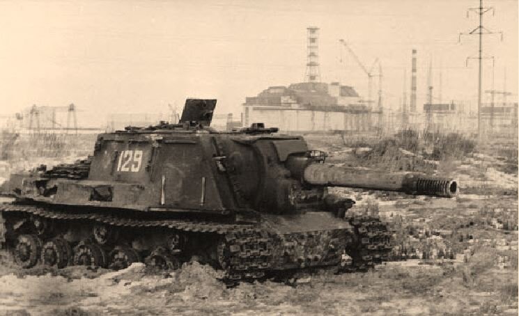 ISU-152 podczas prac w Czarnobylskiej Strefie Wykluczenia. Fot. tankist-31.livejournal.com