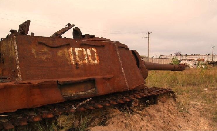 ISU-152 o numerze 100 do dziś stoi w pobliżu magazynów paliwowych i produktów naftowych firmy Novarka, która budowała Nową Bezpieczną Powłokę, w odległości około dwóch kilometrów od placu widokowego na Arkadę.
