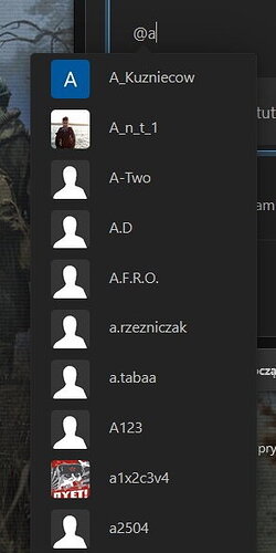 Następie bez odstępu wpisujemy ksywkę, zachowując np. duże litery i inne znaki w niej. Spowoduje to pojawienie się listy rozwijanej.
