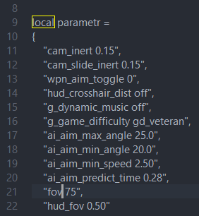 Pole widzenia (szerokość pola widzenia) i pole widzenia hud (czyli odległość w jakiej ręce GG znajdują się od “ekranu”, domyślnie fov 90 i hud_fov 0.65) można trwale dostosować jedynie poprzez edycję (np. Notatnikiem) pliku _vivient_conexec.script(gamedata/scripts/)