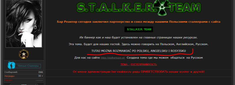 Лично мне кажется, что ниже этого, " Эта тема. Будет для наших гостей. Здесь можно говорить на Польском, Английском, Русском.", должно быть добавлено на польском языке “TUTAJ MOŻNA ROZMAWIAĆ PO POLSKU, ANGIELSKU I ROSYJSKU”.