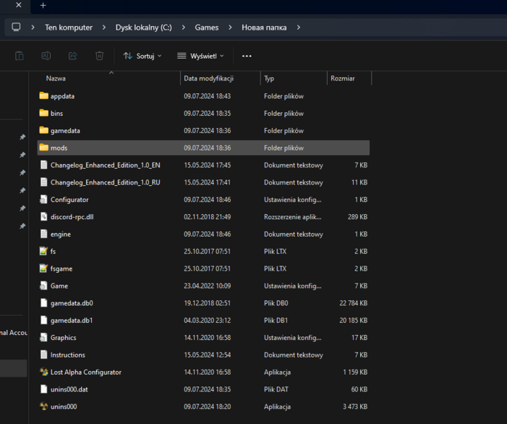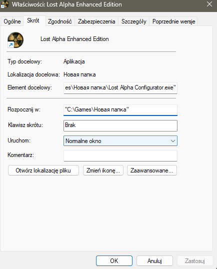 Przykładowo oryginalnie będzie "“D:\S.T.A.L.K.E.R\Lost Alpha Enhanced Edition\bin”, kasujesz \bin i śmiga.