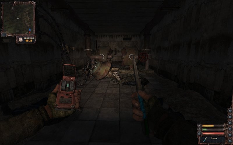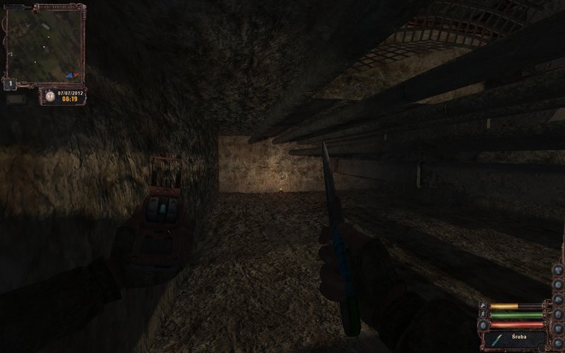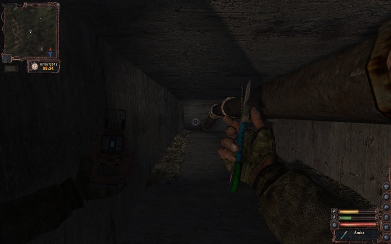 Teraz mamy pomóc Lisowi. Idziemy za nasyp tunelem - tam gdzie kiedyś były elektry. W tunelu jest jedno z 3 wejść do podziemi. Drugie jest posterunku przy nasypie i trzecie w tunelu pod drogą. Zachodzimy do domku - Grzech jest na czerwono - nie strzelamy. Mówimy z Sawą - chce fleszkę z informacjami od Sidora.