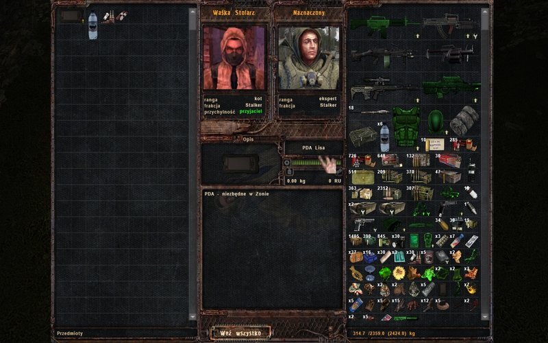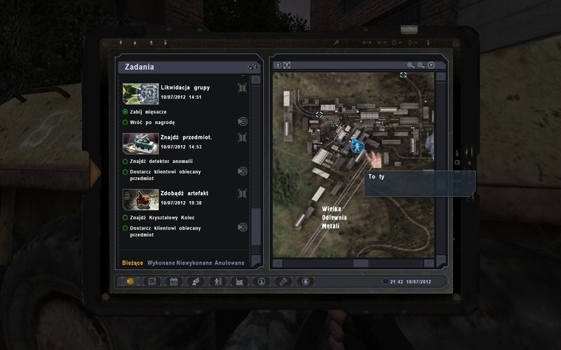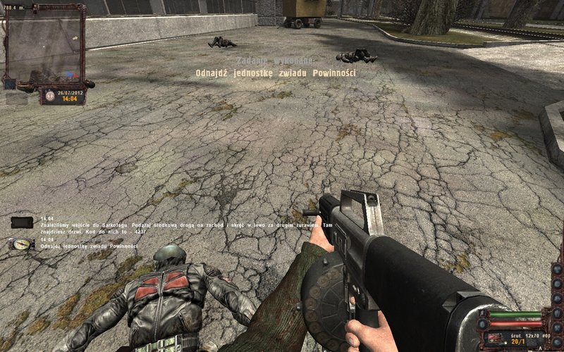 UWAGA: można mieć dobry sprzęt już na początku gry. Po obejrzeniu cut-scenki na ATP - rozmawiają ze sobą koleś w płaszczu i drugi w kombinezonie najemnika o jakiejś skrzyni (nie znam Eng). Po zakończeniu filmiku drałujemy cwałem na przestrzał przez kompleks i doganiamy tych dwóch typów - i rozwalając ich mamy: kombinezon i dwa Sigi z granatnikiem i celownikiem optycznym plus kupa amunicji. Zabijamy frajerów w kompleksie i zabieramy artefakt i PDA z ciała. Wracamy i rozliczamy zadanie.