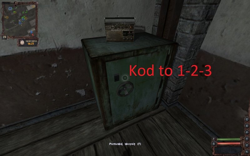 Ciało naukowca odnalazłem stosując metodę “lewej ręki” (lub prawej jak kto woli). Zabrałem z ciała hełm - teraz mam udać się do X-16. Będąc w Lesie przypomniałem sobie o schowku jaki kupiłem od Informatora w Barze. Dostajemy się do niego skacząc z “pazura” skalnego (jak w Zewie Prypeci po meduzę w jaskince). Zaglądamy do skrzyni i robimy “Weź Wszystko” - to ważne - mama nie ma ikonki - info od Apg2312. W zakładkach pojawia się nam mapa przejścia w zakładce i na mapie widać schowek - Skok Wiary. Kto oglądał “Indiana Jonesa i Ostatnią Krucjatę” ten wie o co chodziło autorom moda ;D ;D ;D.