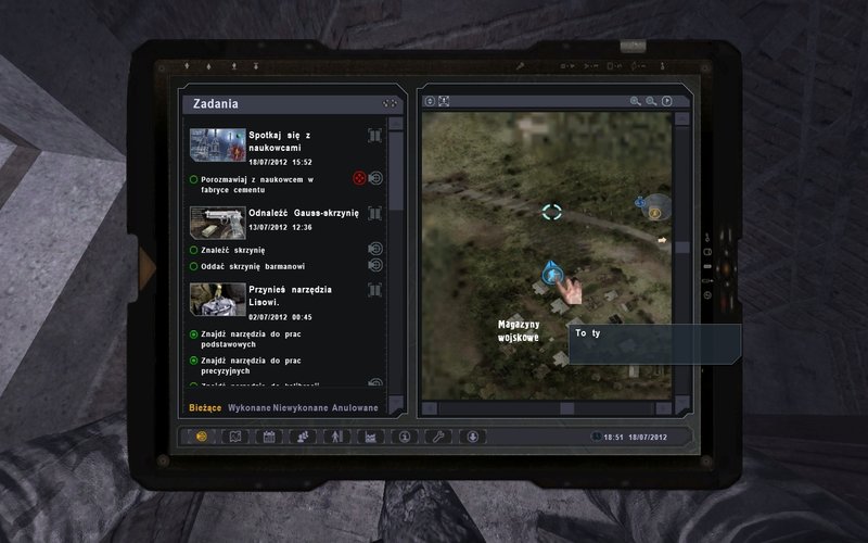 Na Agropromie kasujemy wojaków i pomagamy Kretowi - daje namiar na książkę Strzelca i pendrive w podziemiu. Książkę łatwo odnaleźć, fleszka jest w kanale wentylacyjnym pod sufitem w pomieszczeniu z łóżkami szpitalnymi. Wychodzimy na zewnątrz i dostajemy info od Barmana by pomóc Szczurołapowi. To dezerter z podstawki - mamy odnaleźć uwierzytelniające jego wersję dokumenty w kompleksie wojskowym i dostarczyć je do baru. Po wykonaniu tego zadania idziemy na Wysypisko. Przychodzi SMS od Kreta - jego miejsce pobytu to tunel kolejowy. Docieramy do Baru.