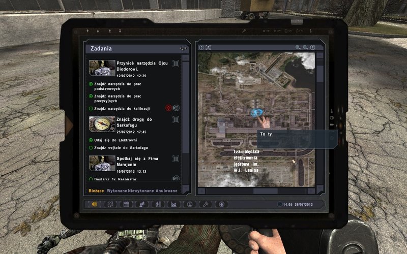 U Sacharowa zostawiamy komponenty i idziemy na pogawędkę z Krugłowem. Przychodzi wiadomość - odbieramy nasz naprawiony PDA. Kolejny SMS wzywa nas do Baru na pomoc Pietrence. Mamy zlikwidować dwa MI-24. Bierzemy RPG z ciała na dachu i walimy. Więcej pocisków daje Pietrenko. Po sprawie mówimy z nim - teraz nasze kroki mamy skierować do przedmieść Prypeci - tam teraz urzęduje Barman i Woronin.