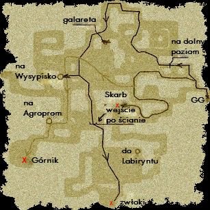 … mapka lokacji LABIRYNT: (na mapie Labiryntu zaznaczona droga dotarcia do rannego najemnika i dysku dla Ginekologa)