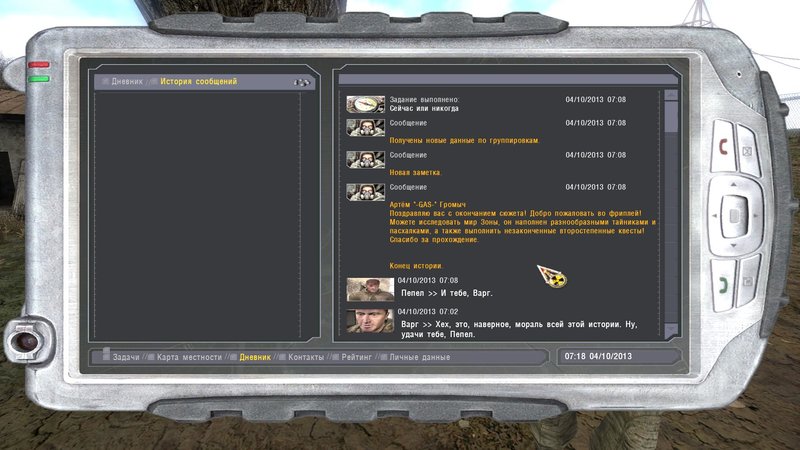 Po zdaniu relacji na ATP z misji mamy info żeby udać się do kryjówki Striełoka, po drodze dostajemy sygnał SOS od snajpera i jego siostry że zostali zaatakowani na wysypisku przez Bandytów ( ważna jest kolejność udzielania pomocy, jak i innych wyborów dokonywanych podczas przechodzenia moda aby zakończenie rozgrywki było pozytywne, opis konkretnych wyborów na stronie moda), ratujemy najpierw siostrę snajpera później jego ( snajper dobrze sobie radzi sam