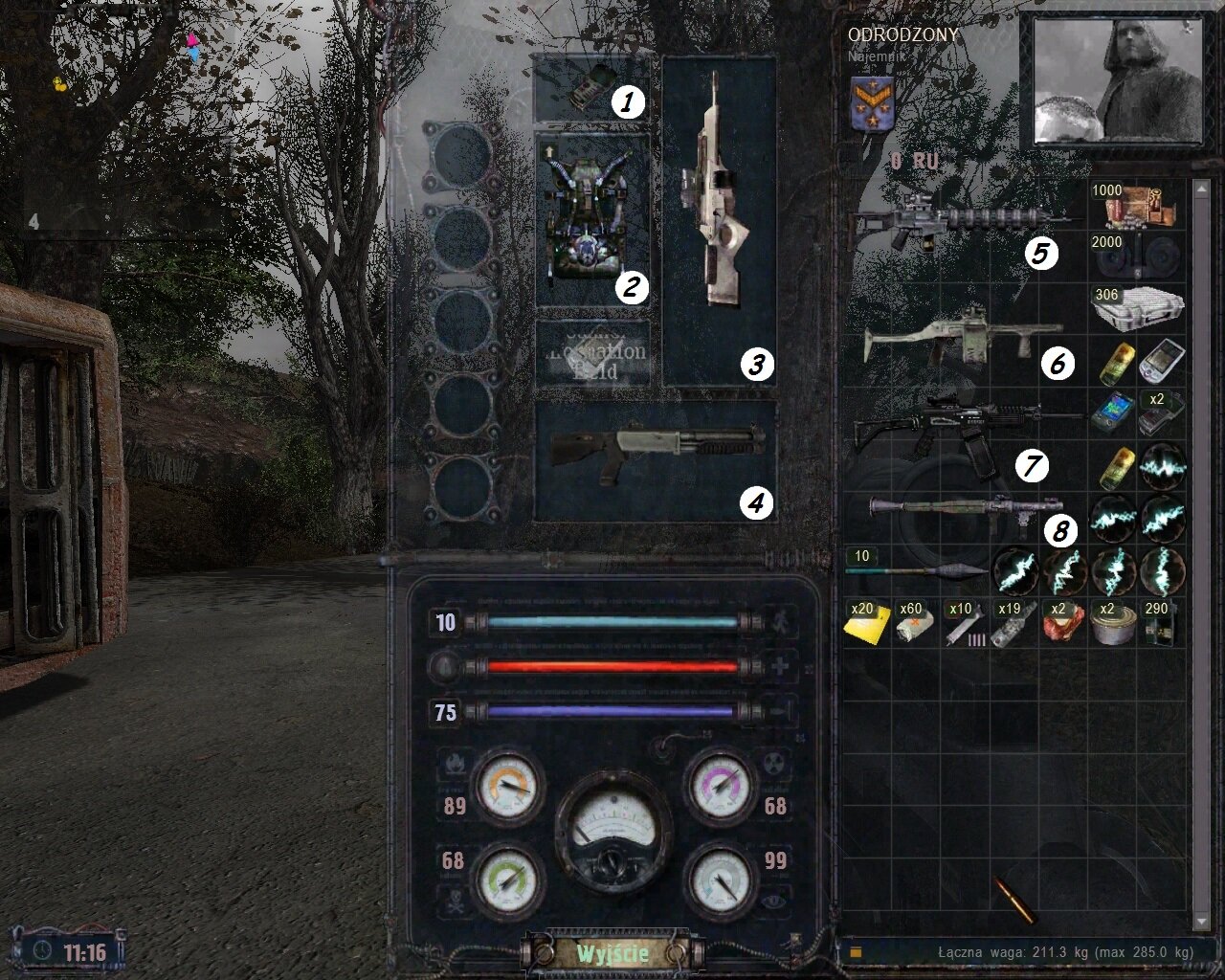 10 - Grawi-karabin maszynowy - Jak Suseł oraz kondotier słusznie zauważyli poniżej Grawi-karabin również jest bardzo przydatny w walce przez swoją siłę rażenia. Znaleźć go można w podziemiach Agrokatu. Po wejściu na Jantar i wróceniu tą samą drogą lądujemy na Agropromie z rzeczywistości Cienia Czarnobyla. Ładujemy się do skrytki Striełoka i wchodzimy w teleport. Po teleporcie cofamy się do tuneli a nie wchodzimy do Metra. Cofamy się dlatego, albowiem poszukujemy trupa duplikata Szramy, bo takie dostaliśmy zadanie. Schodzimy do tunelu gdzie w CzN mieliśmy spalacze i snorki i szukamy tam ciała. Będzie ono leżeć albo na korytarzu albo w zakamarku z rozerwaną ścianą gdzie w CzN było przejście Agroprom->Podziemia Agropromu. W ciele znajdować się będzie wspomniany karabin.