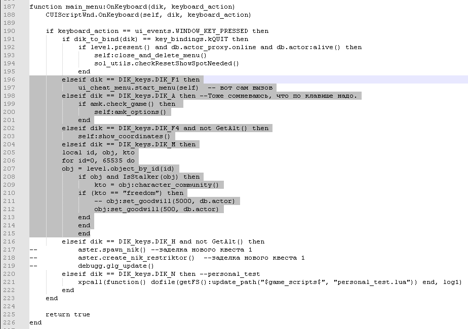 Przy użyciu klawisza “M” odpala się mała funkcja dodająca każdemu wolnościowcowi w zasięgu A-life +500 do “goodwill”. W pobliżu bazy na Magazynach trzeba wyjść z gry (Esc) i wcisnąć “M”, na minimapie będzie widać, czy Wolność jest “na żółto”. Powtarzać do skutku.